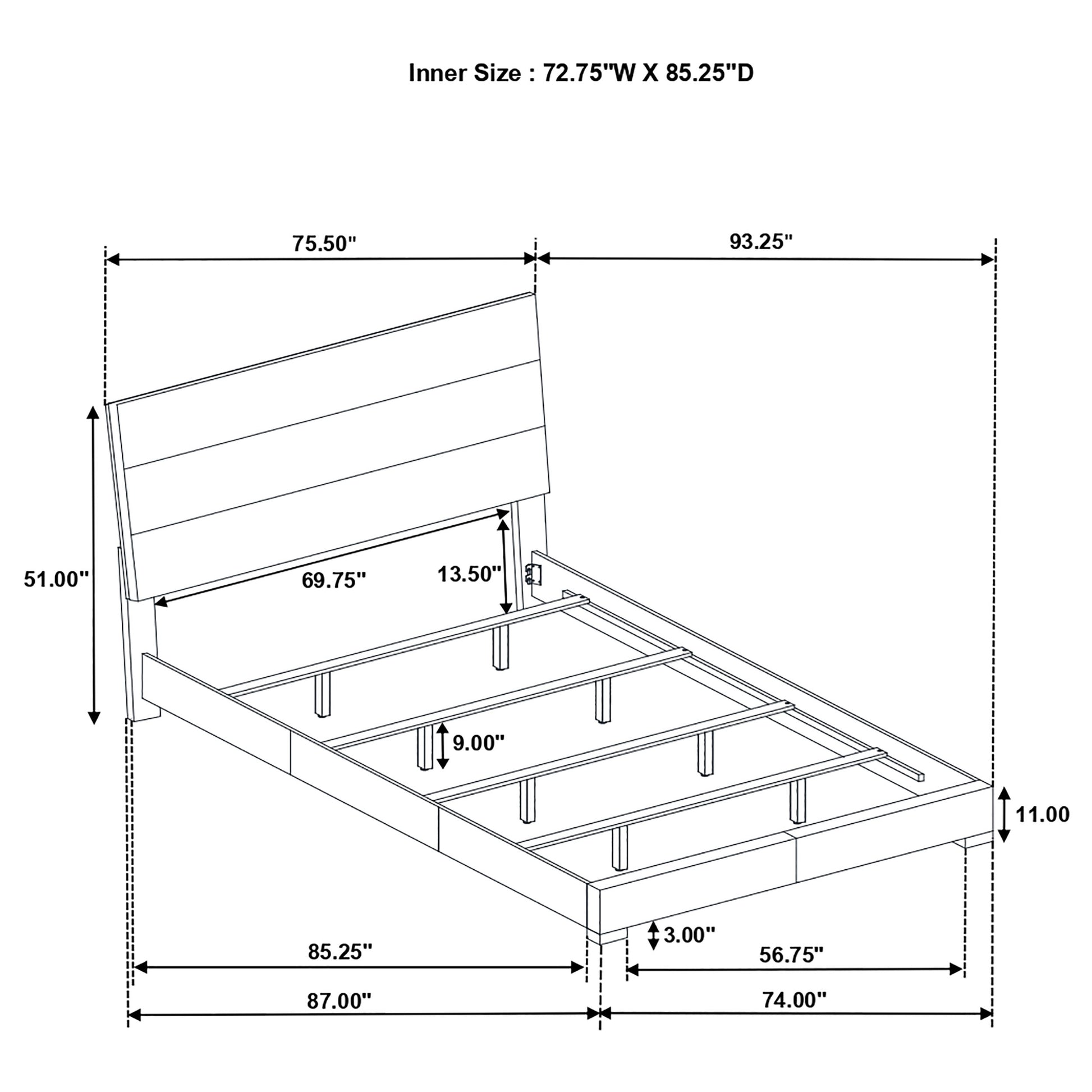 - Fabric Color: White - Wood Finish: White High Gloss - Hardware Finish: Chrome - Leg Color: Chrome - Upholstery: Leatherette - Fabric Content: Polyvinyl Chloride 71%, Polyester 26%, Polyurethane 3% - Clean Code: W - Number of Pieces: 6 - Size: California King - Foundation Required: Yes - Overall Weight Limit: 600 Lbs - Drawer Weight Limit: 45 Lbs - Tipover Restraint: Yes - Assembly Required: Yes - Materials: Asian Hardwood, Foam, Laminated Veneer Lumber (Lvl), Leatherette, Medium Density Fiberboard (Mdf)
