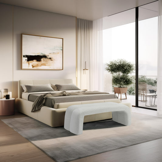 Kiki Cream Boucle Fabric Ottoman/Bench Cream