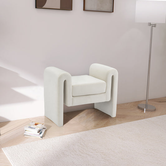 Devin Beige Faux Shearling Teddy Fabric Bench Beige