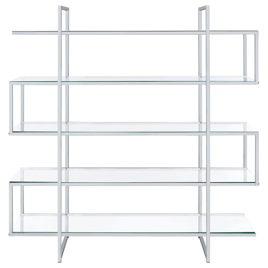 Elton 63-inch 5-shelf Bookshelf Clear and ChromeClear