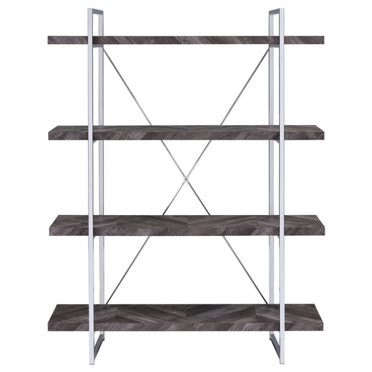 Keith 63-inch 4-shelf Bookshelf Rustic Grey and ChromeRustic Grey