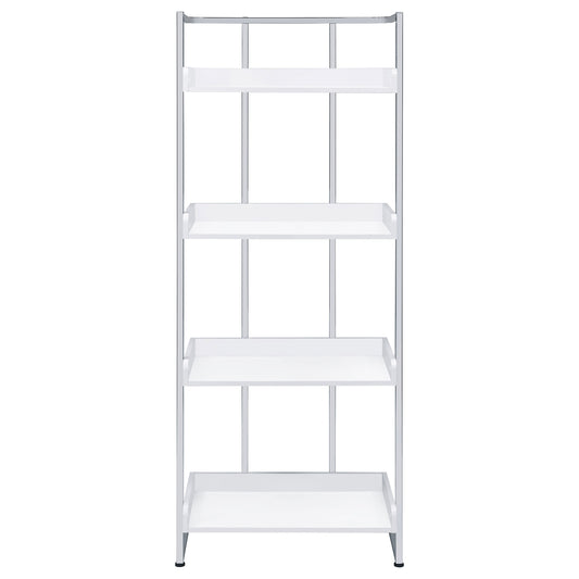 Warner 68-inch 4-shelf Bookshelf White High Gloss and ChromeWhite High Gloss