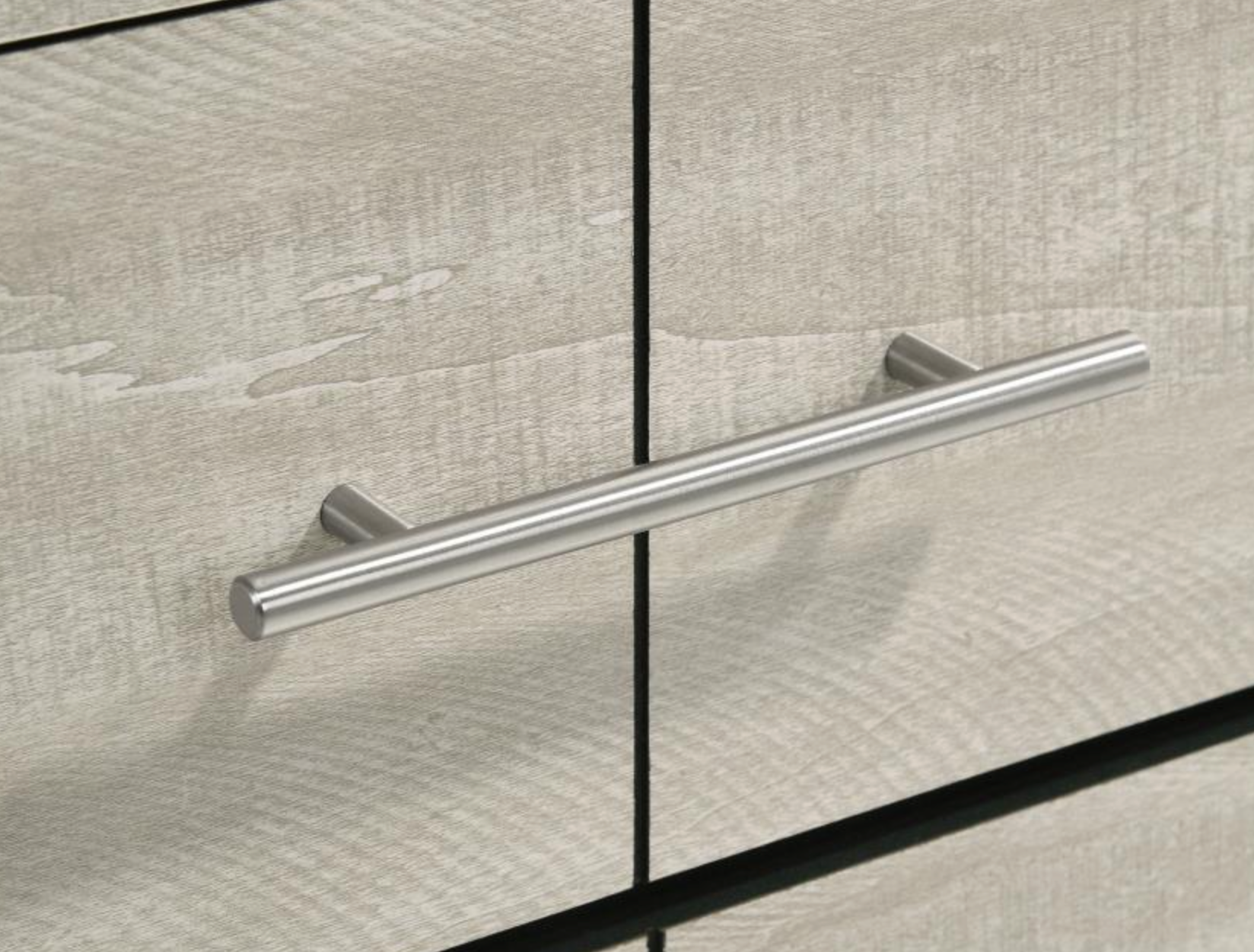 This four-drawer chest offers a stylish combination of rustic charm and modern design, making it a perfect storage solution for contemporary bedrooms. Finished in a rustic cream with rough-sawn, white-washed engineered paper veneer, it has a warm, textured appeal that’s both inviting and chic. The extra-wide polished nickel handles add a sleek, modern touch, creating a subtle contrast. Built with engineered wood, the chest features English dovetail joinery and Center metal glides for durability and smooth functionality, ensuring it meets both aesthetic and practical needs.