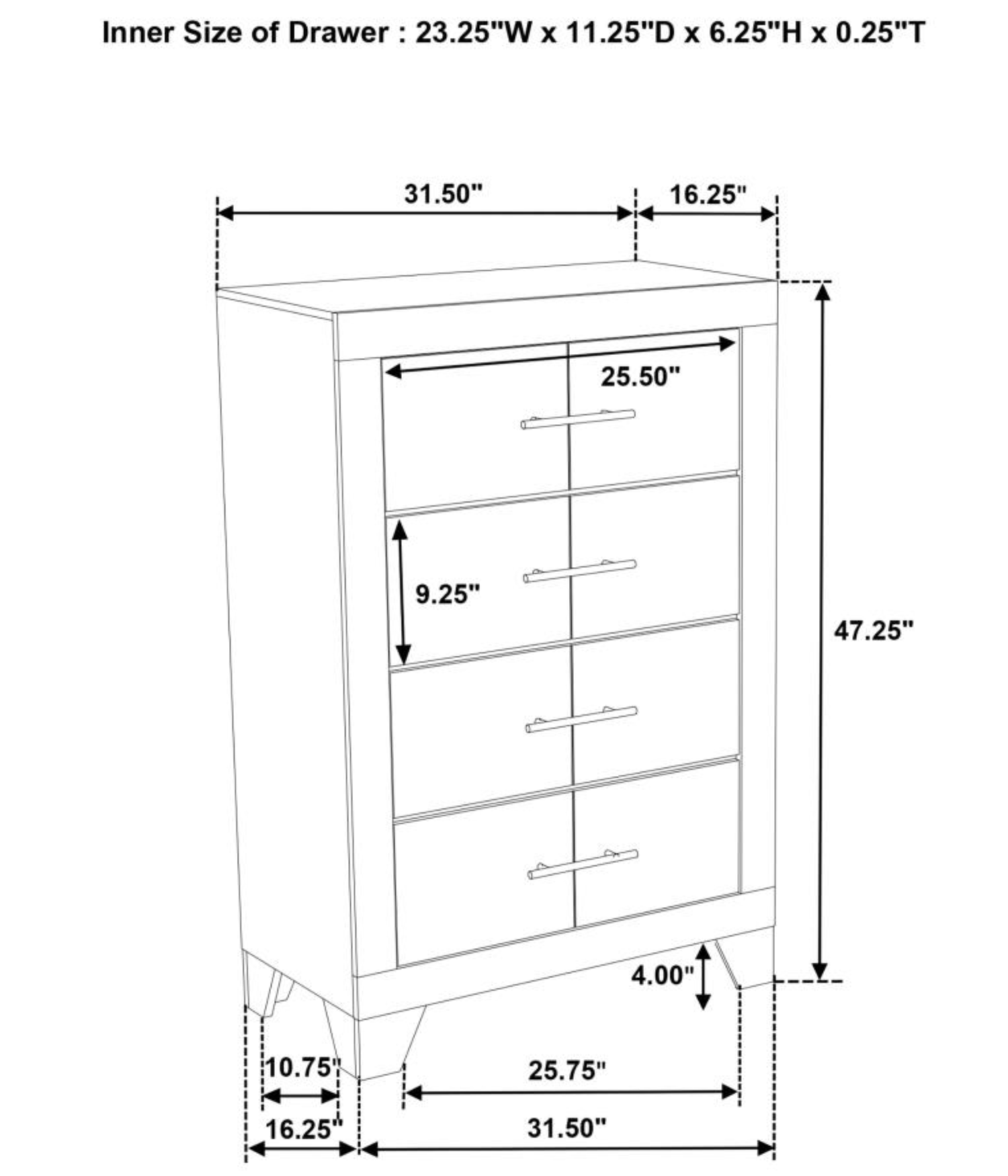 Includes: One (1) chest of drawers