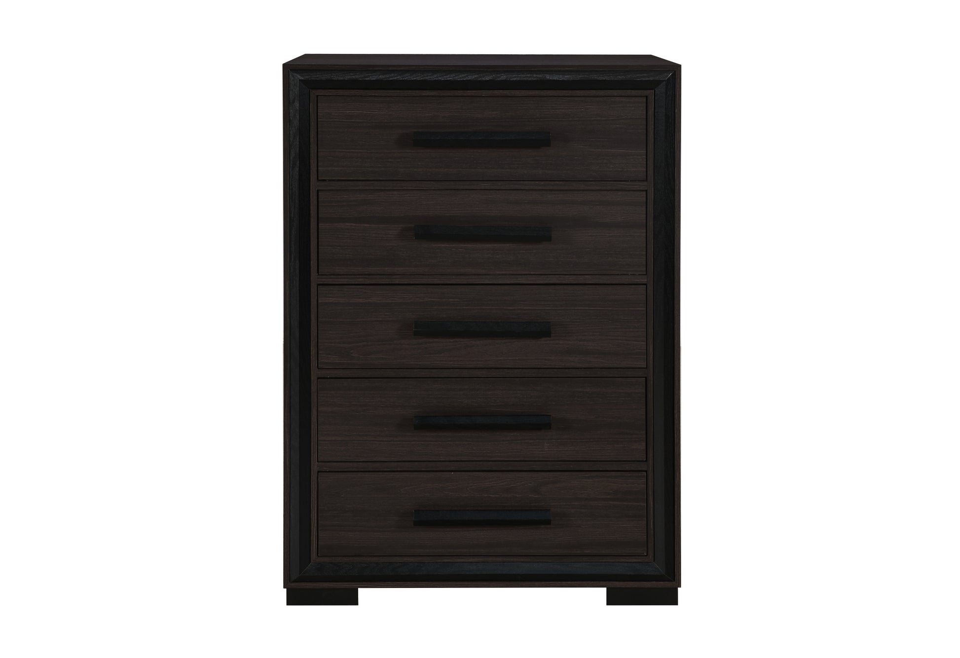 The Paris Chest by epitomizes vertical storage sophistication. This tall chest is a space-saving marvel, offering generous storage within its drawers without sacrificing style. Like the other pieces in the collection, it features the eye-catching brown finish and black accent trim that define the Paris line. The sleek black drawer pulls ensure seamless operation and contribute to the chest's sleek appearance. Whether storing sweaters, linens, or accessories, the Paris Chest is an ideal solution for maintaining an organized and elegant bedroom.