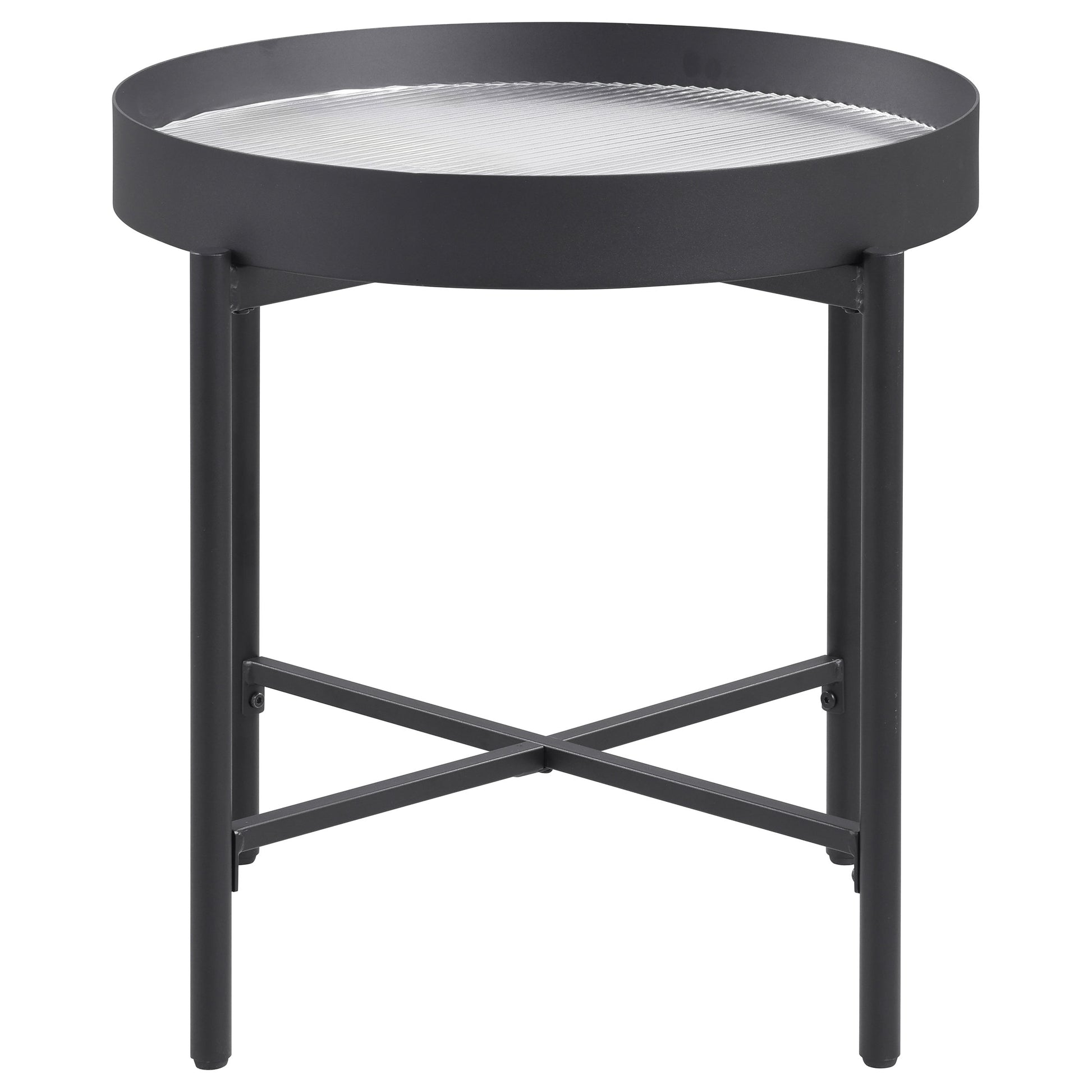 Seraphina Round End Side Table with Recessed Top Sandy Black