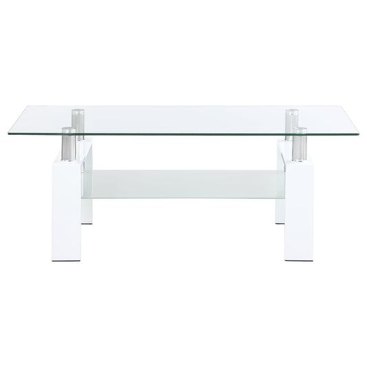 Toby 1-shelf Rectangular Glass Top Coffee Table WhiteWhite