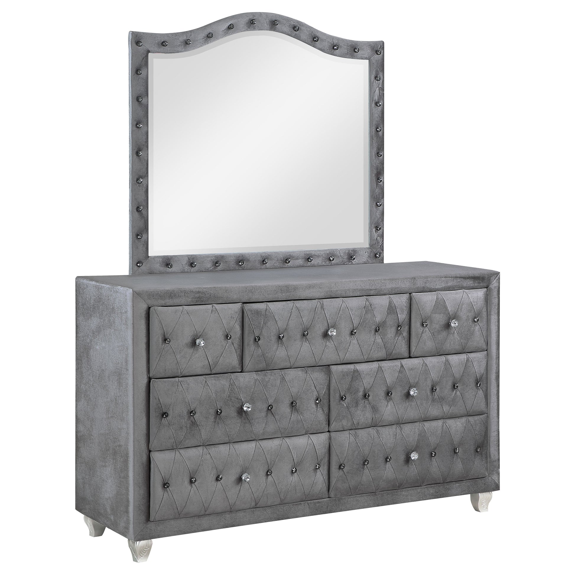 Colleen 7-drawer Upholstered Dresser with Mirror GreyGrey