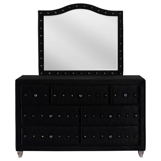Colleen 7-drawer Upholstered Dresser with Mirror BlackBlack