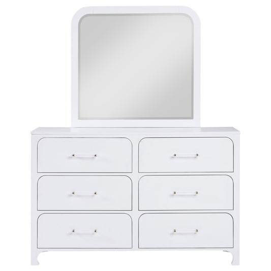 Aghes 6-drawer Dresser with Mirror Pearl WhitePearl White