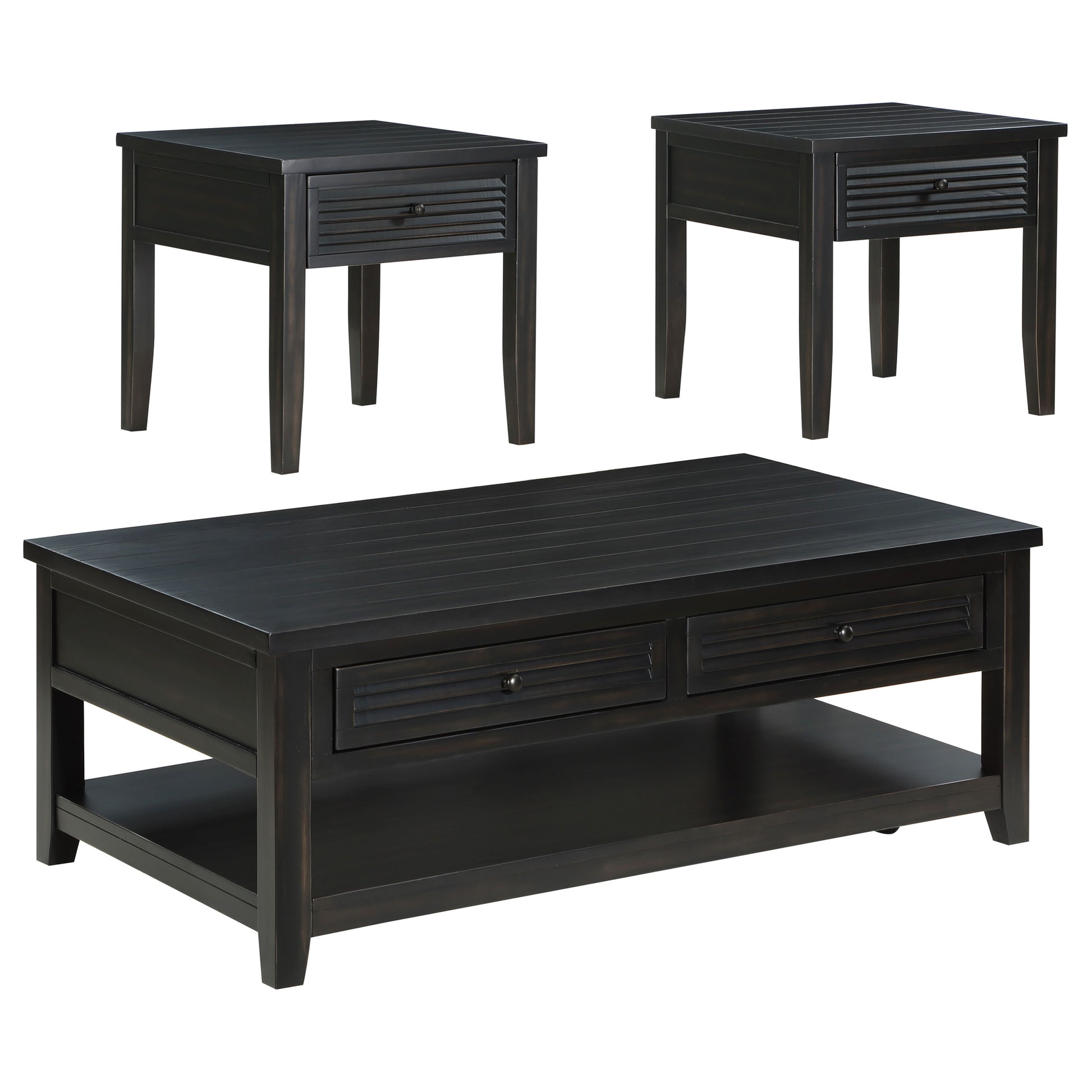 Includes: One (1) coffee table and two (2) end tables