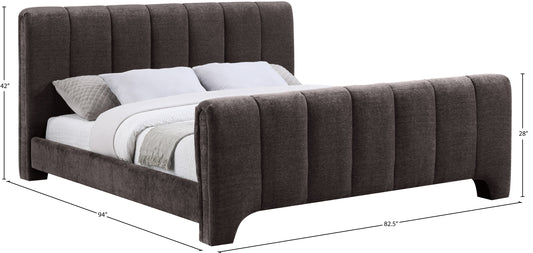 Karina Brown Chenille Fabric King Bed (3 Boxes)