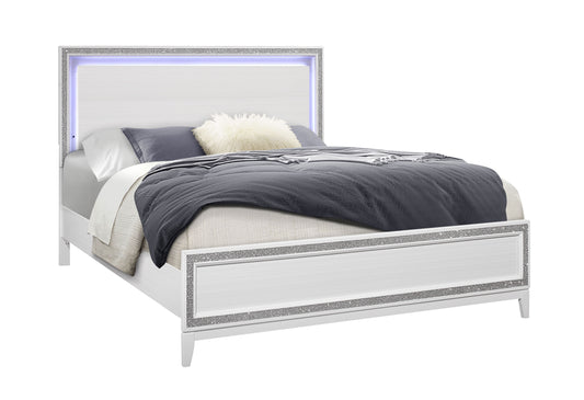 Mikayla Wood Eastern King LED Panel Bed White High GlossWhite High Gloss