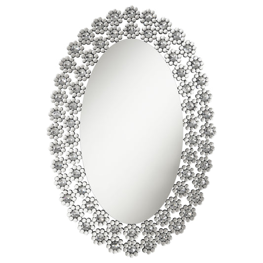 Melody 31 x 47 Inch Oval Wall Mirror Crystal Flowers SilverMirror