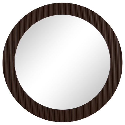 Jessica 40 x 40 Inch Round Reeding Frame Wall Mirror BrownBrown
