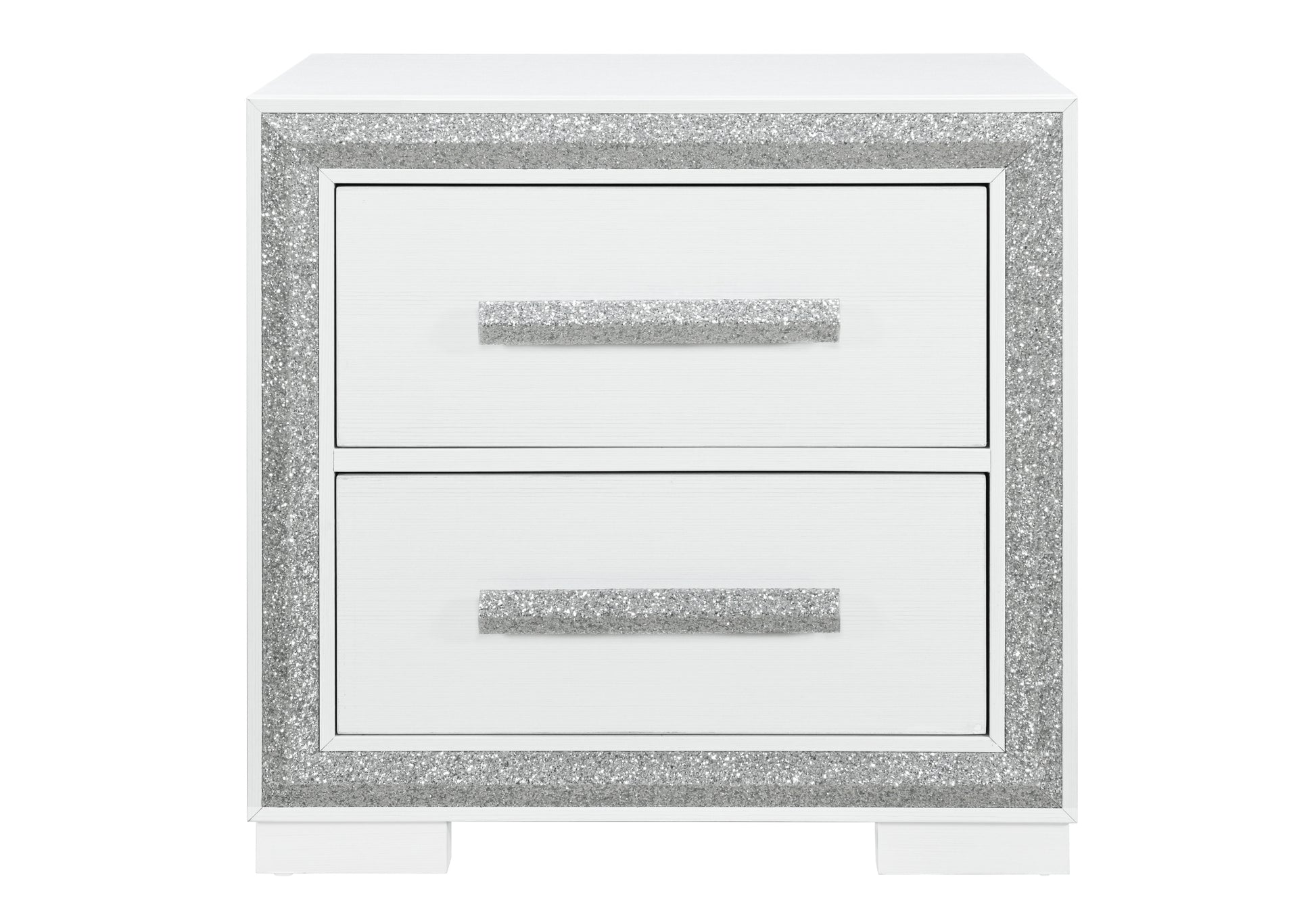 Complete your bedroom set with the Monaco Nightstand by , a perfect blend of form and function. This chic nightstand features the signature white finish and silver glam accent trim of the Monaco collection, creating a consistent and stylish look. The Monaco size does not compromise on storage, with drawers that provide easy access to your nighttime necessities. The sleek glam drawer pulls add a refined touch, making this nightstand not just a piece of furniture, but an accent that elevates the elegance of your sleeping quarters.