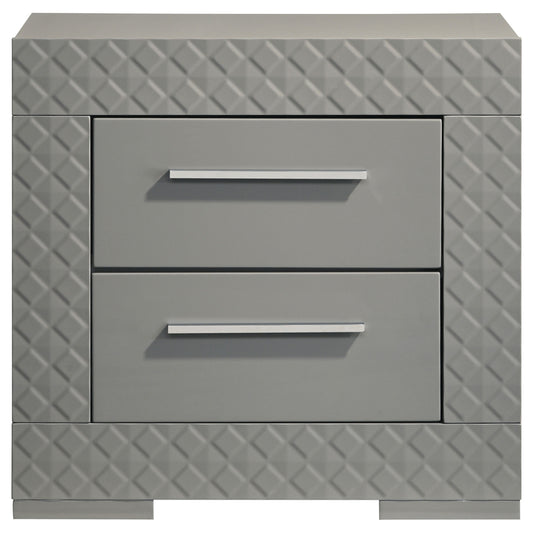Foster 2-drawer Nightstand Bedside Table Grey High GlossGrey High Gloss