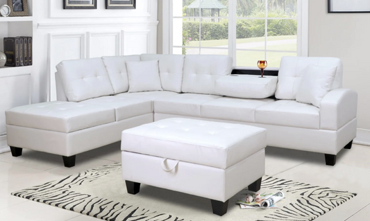 Timothy Sectional with Free Storage Ottoman in WHITE