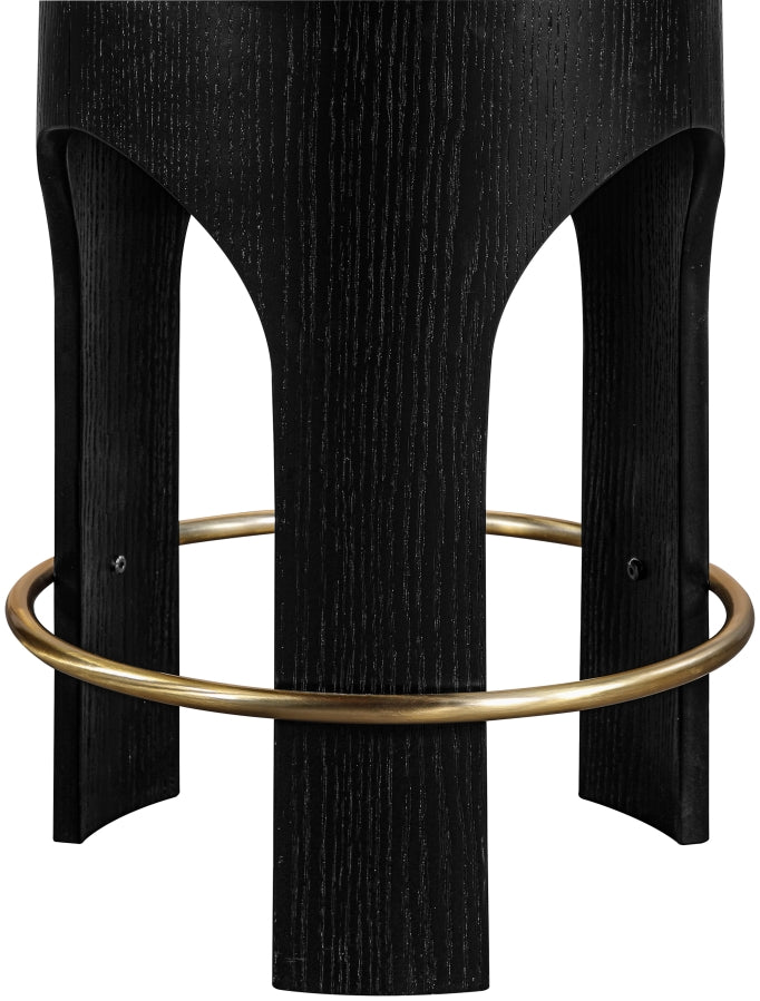 Luxe cream velvet meets sculptural woodwork in the Andrea velvet upholstered counter stool, bringing instant glamour to your space. The rich black finish and oak veneer are paired with a brushed gold metal footrest for an Art Deco touch. Perfect for adding both comfort and sophistication to your kitchen island or bar.