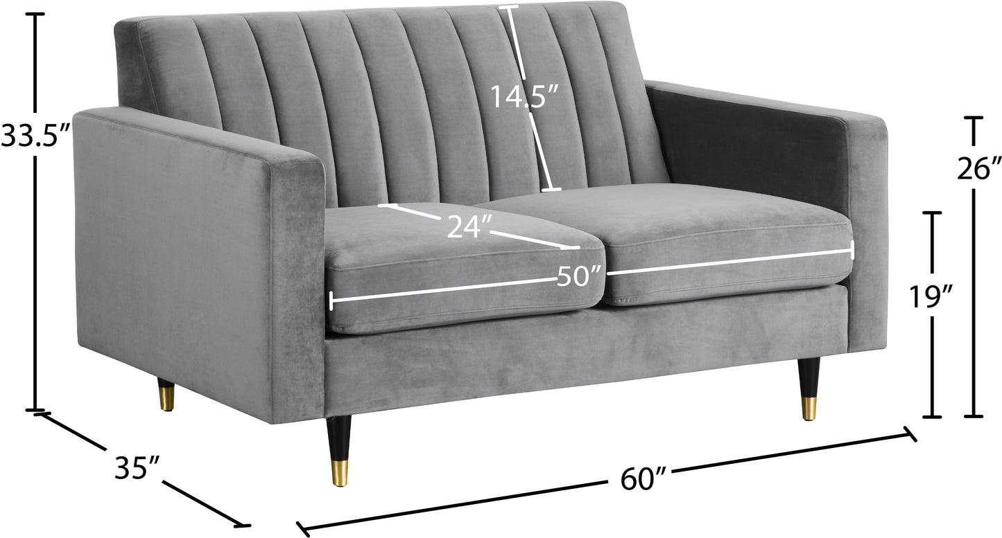 Brandy Grey Velvet Loveseat L