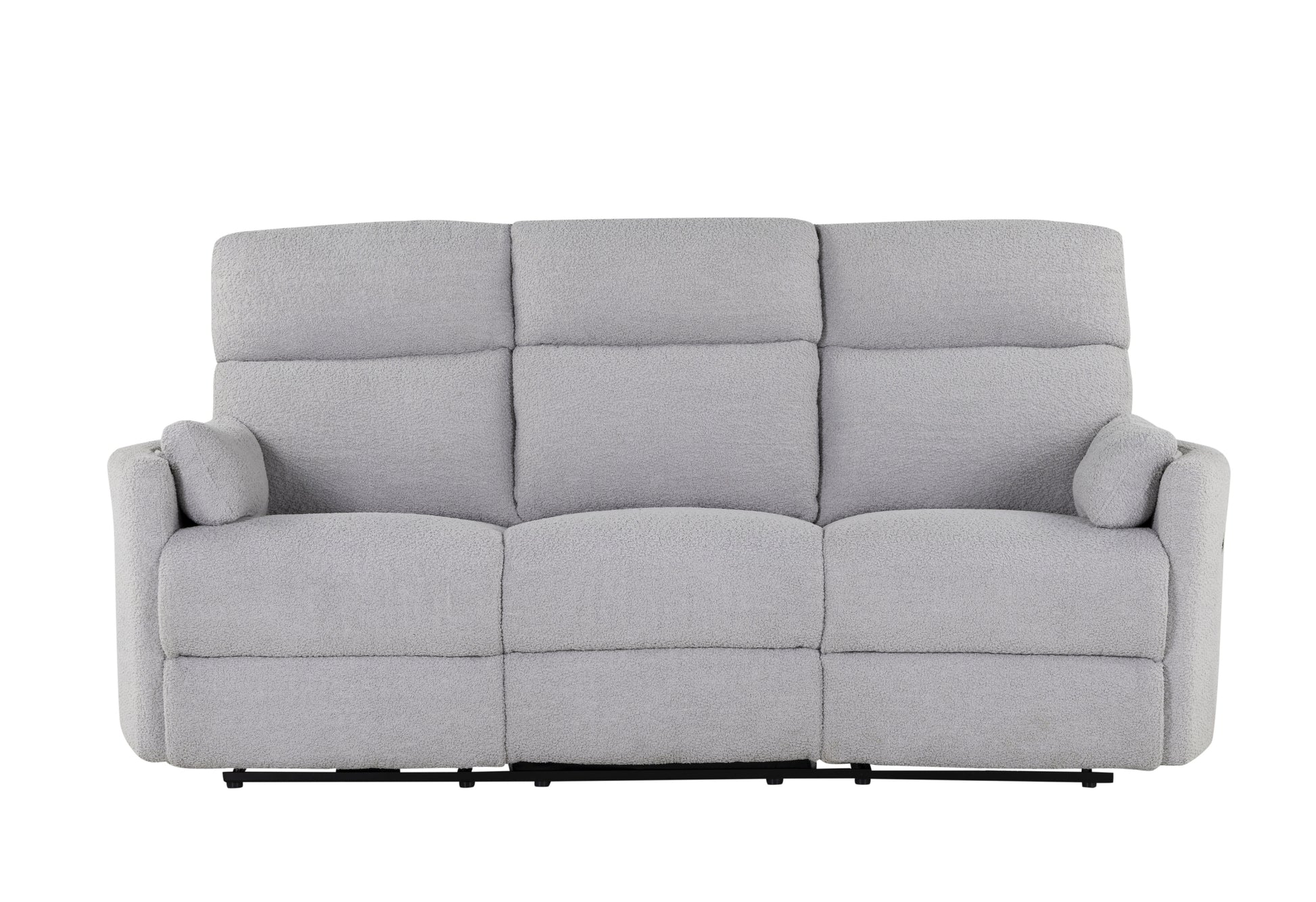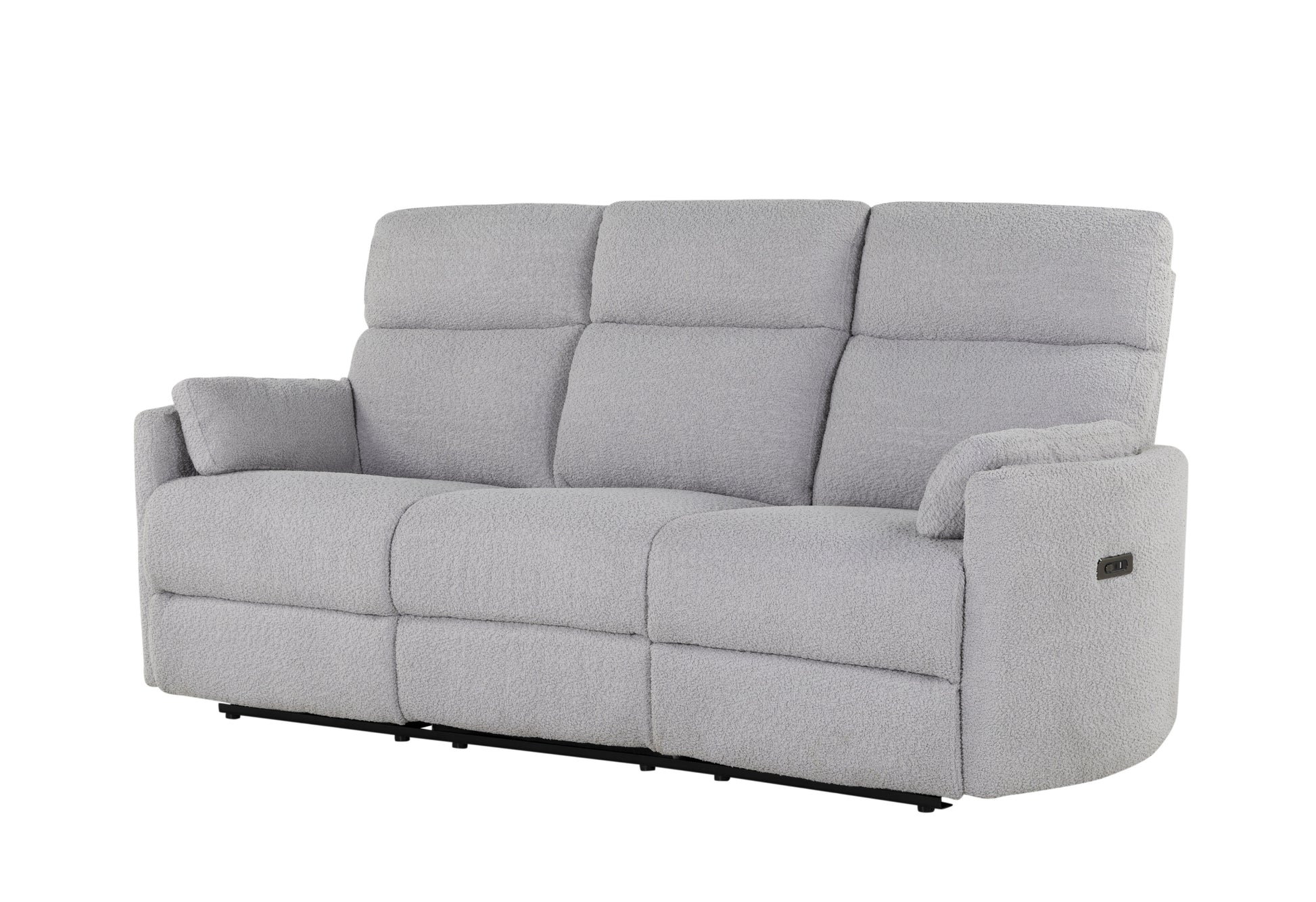 Experience ultimate comfort with the Power Reclining Sofa. This elegant piece includes a convenient drop-down table and dual cupholders, perfect for your relaxation needs. The Clara fabric, overstuffed cushions, and curved armrests with zippered pillows offer unparalleled comfort, while USB connectivity ensures your devices are always charged.