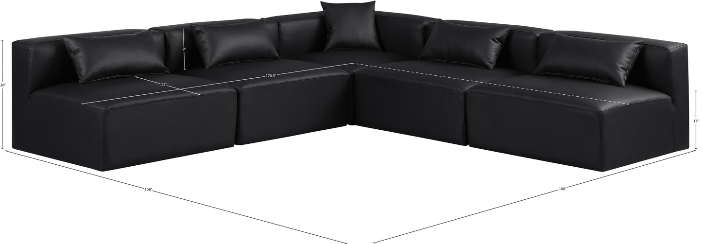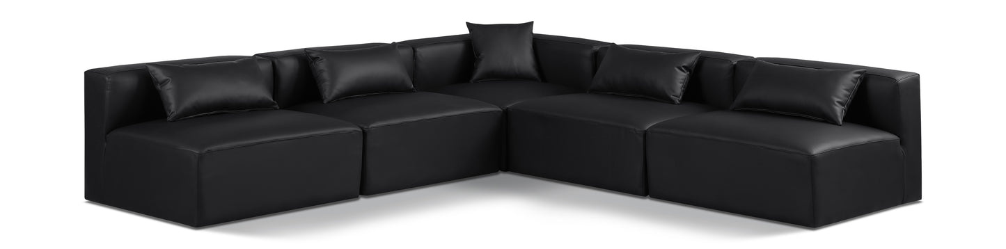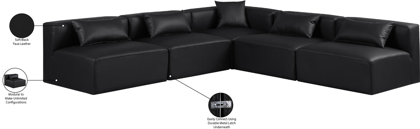Crescent Black Faux Leather Modular Sectional Sec5B