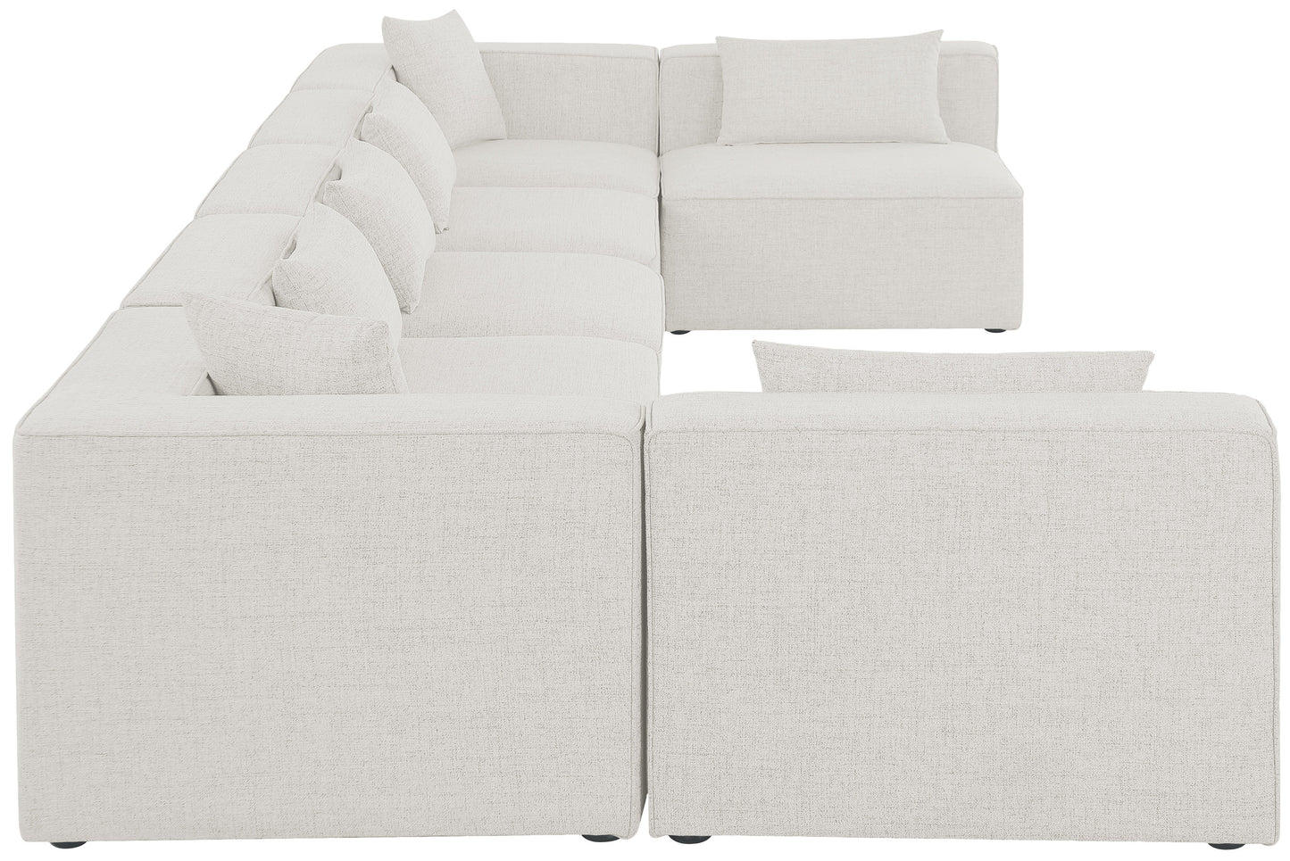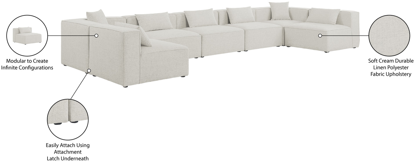 Mix and match the pieces in this Cube modular section to personalize its fit for your space. This modular unit features soft cream linen textured upholstery that's not only beautiful to behold but is easy to care for an maintain. Attachment latches beneath each piece of this sectional make it a simple feat to put the pieces together to meet your specific preferences. Choose other items from the Cube lineup to expand the sectional as desired.