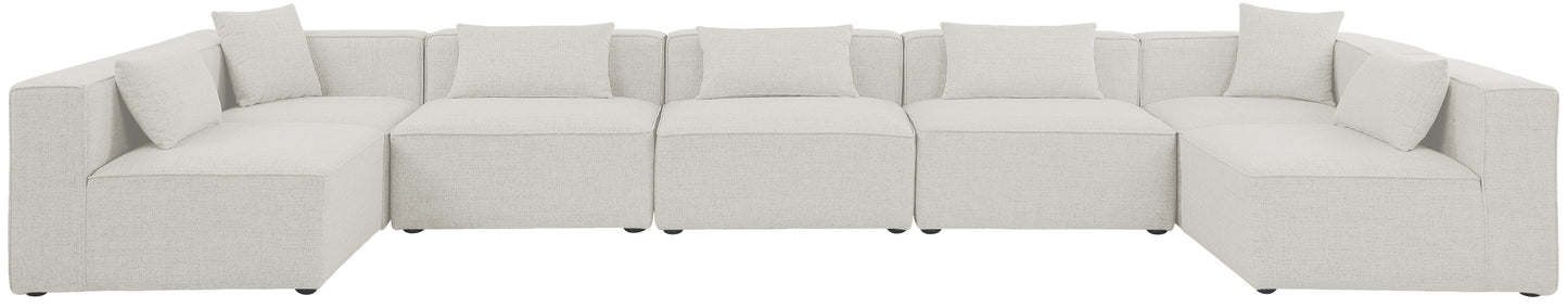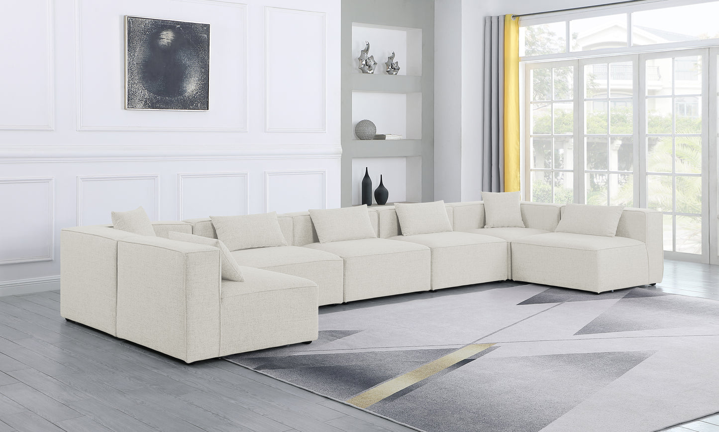 Crescent Cream Durable Linen Textured Modular Sectional Sec7B