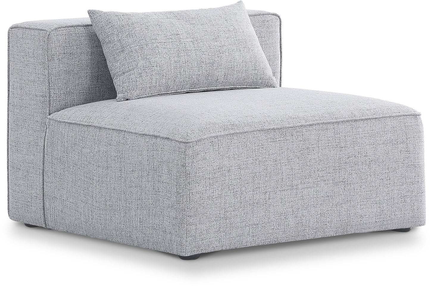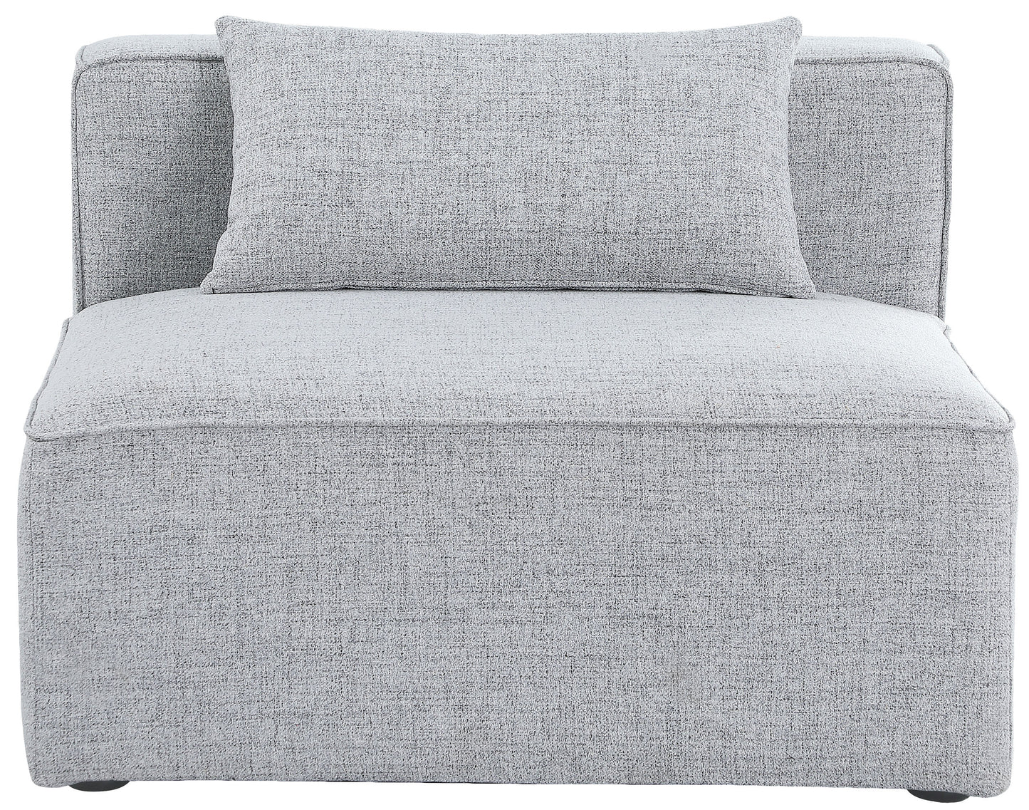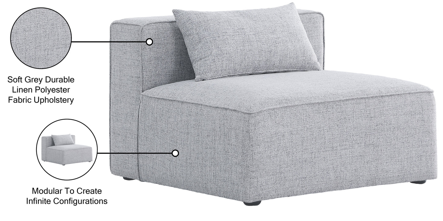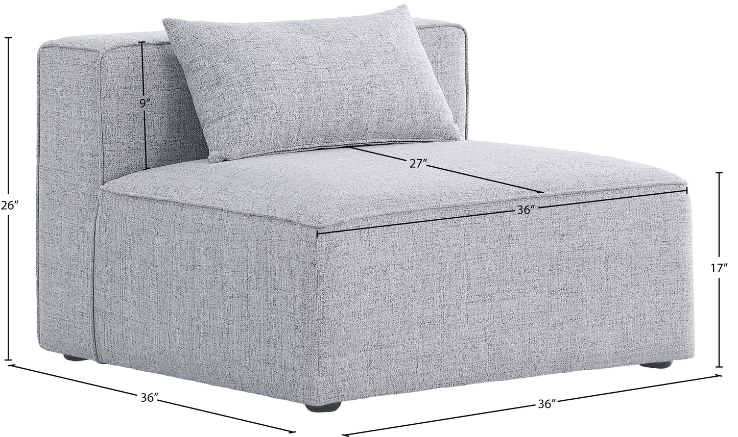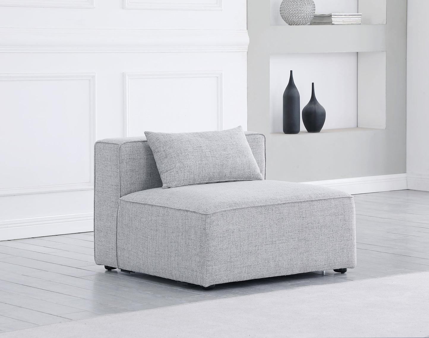Treat yourself to some long overdue "me time" when you're seated on this Cube Modular Armless Chair. This beautiful modular unit is both eye-catching and elegant, features durable linen textured upholstery in a soft grey color that meshes well with nearly any existing color scheme. Pair this modular Armless Chair with other items in the same collection to create an unlimited number of combinations and enjoy the custom seating arrangement of your dreams. Latches underneath make it easy to attach pieces to one another.