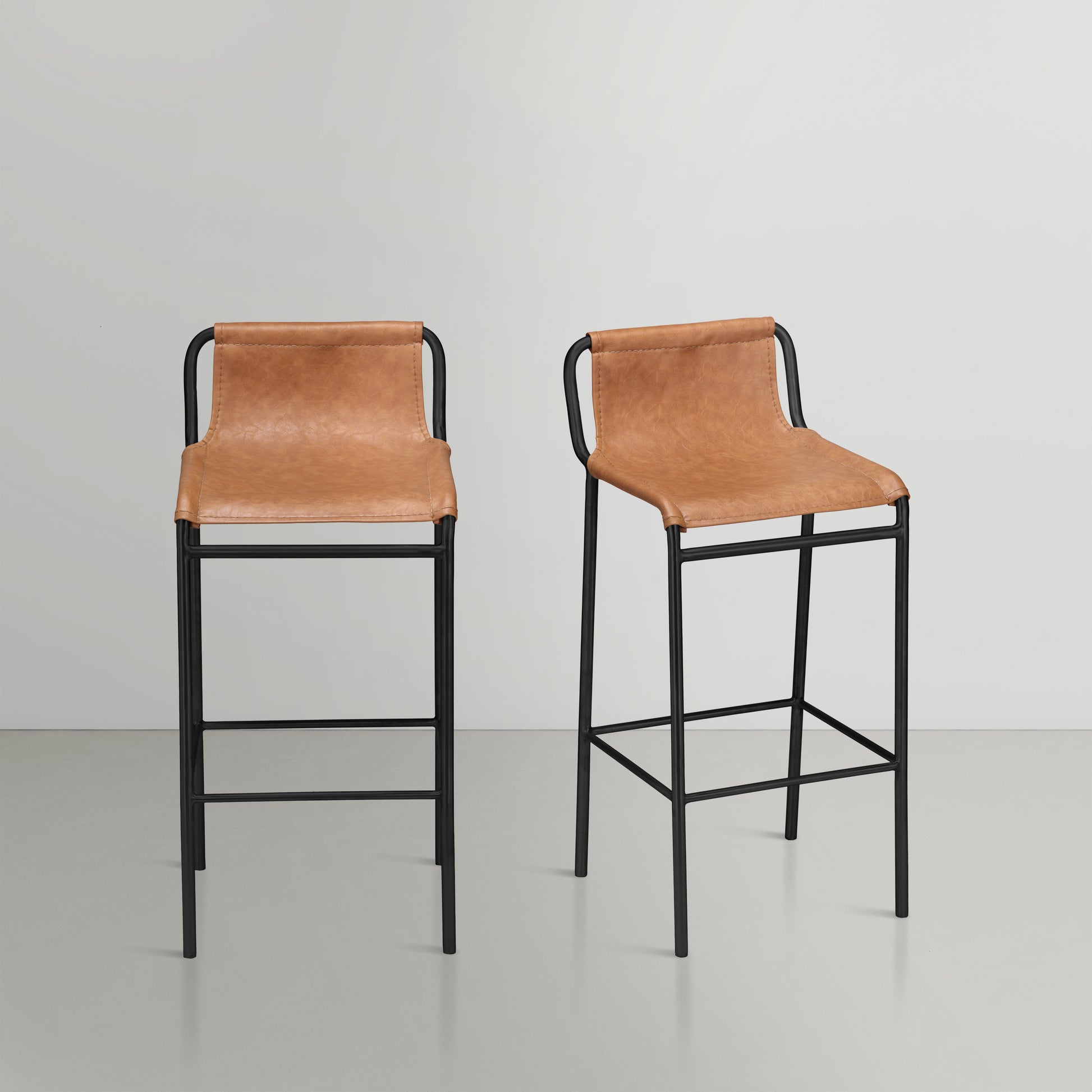 Hop up and take a seat at your breakfast bar with this Dax faux leather counter stool. Featuring soft cognac faux leather paired with a matte black metal frame, this counter stool makes a bold statement no matter what your decor style. Its contemporary design is perfect for the modern home, with its tall legs providing ample space for you to stretch your legs while you eat breakfast. A thin footrest wraps around the stool's legs, allowing you to rest your pups while enjoying your morning meal.