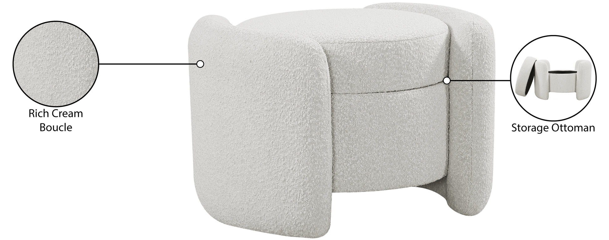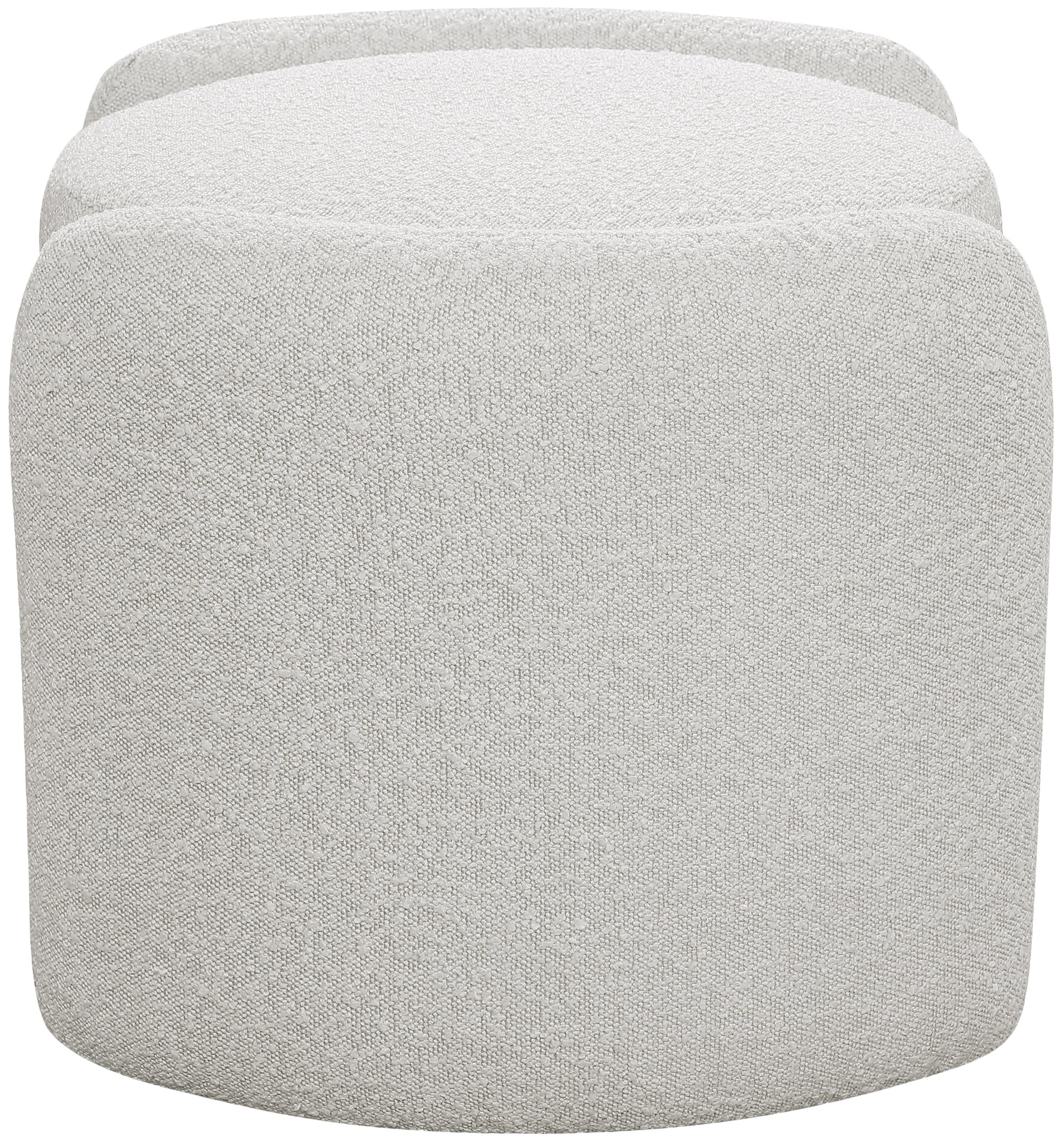 Kick back and relax in style with the Horizon ottoman from Meridian Furniture. Featuring elegant cream boucle fabric and a unique contemporary design, this ottoman will add a chic touch to any space in your home. Its seat width makes it the perfect size for resting your legs or provides your home with an additional seat for visitors. With its light weight, this ottoman can easily be moved, making it a versatile accent piece for any room.